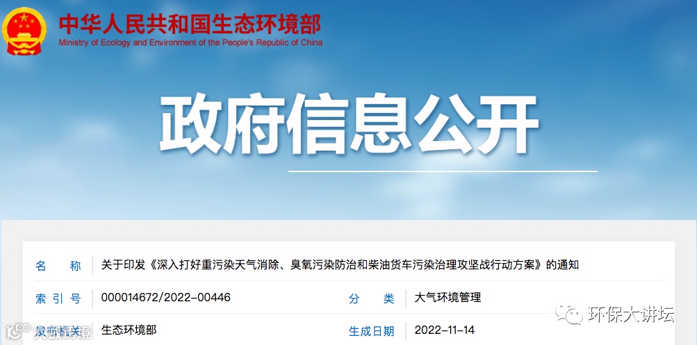 生态环境部发布《重污染天气消除攻坚行动方案》