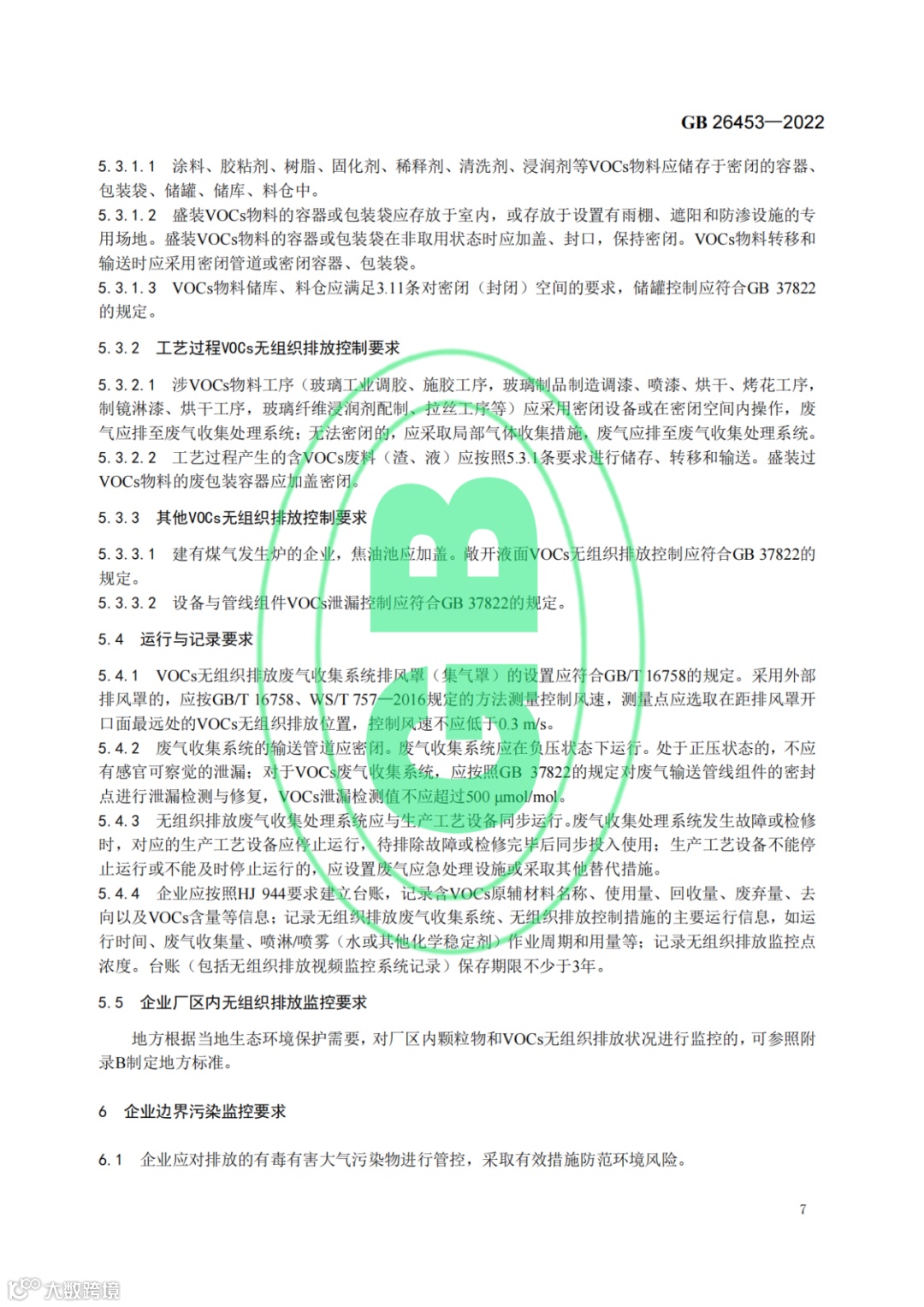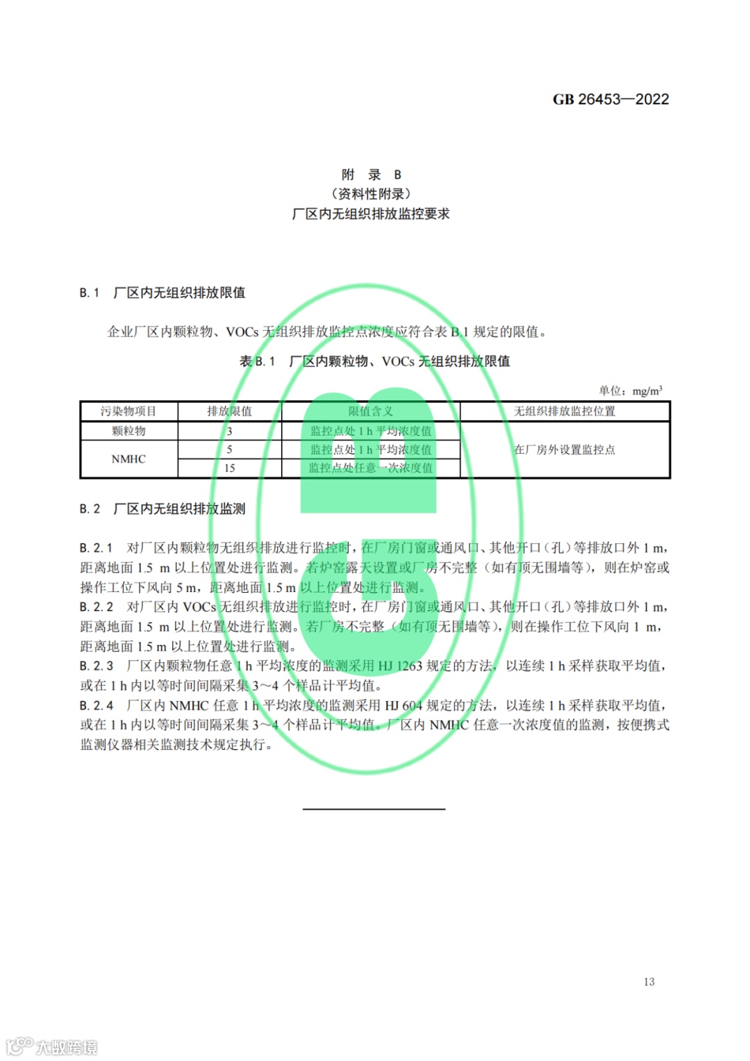 此外,本标准提出了颗粒物和VOCs厂区内监控浓度限值的建议值,由地方根据当地环境保护的需要自主实施,对厂区内无组织排放状况进行监控。