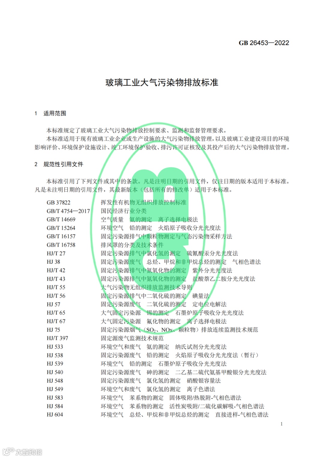 《玻璃工业大气污染物排放标准》(GB 26453—2022)解读