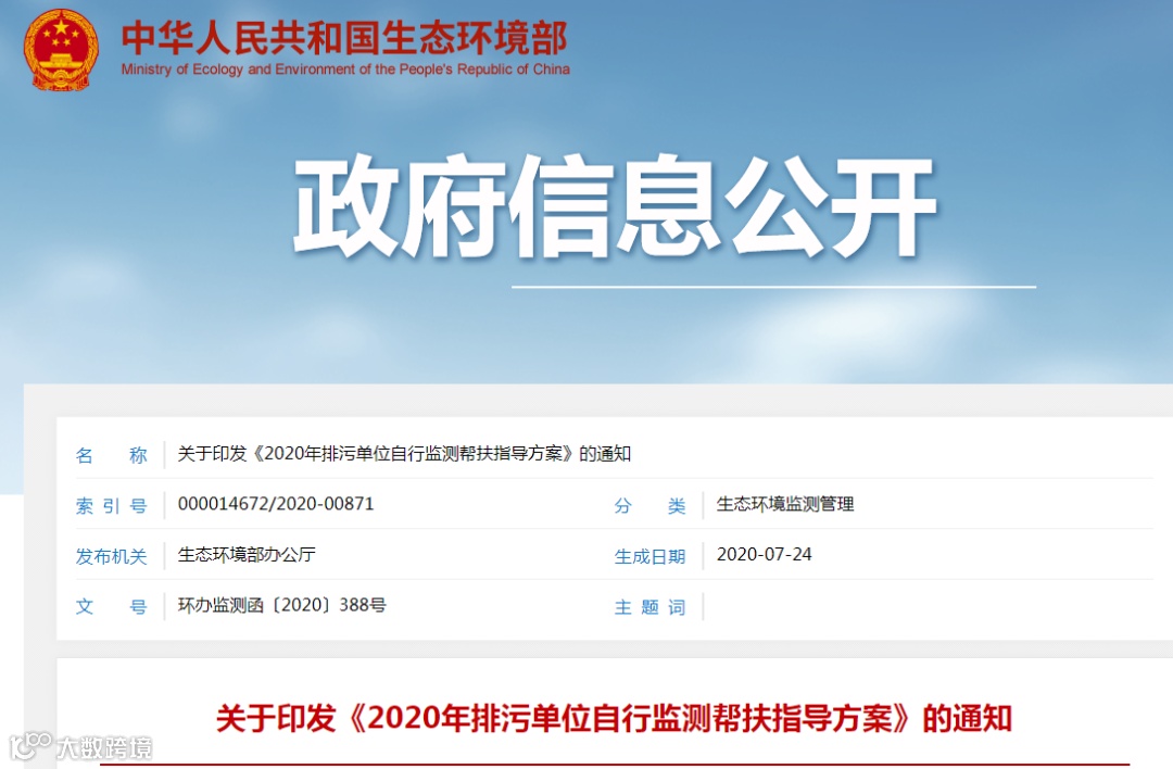 关于印发《2020年排污单位自行监测帮扶指导方案》的通知