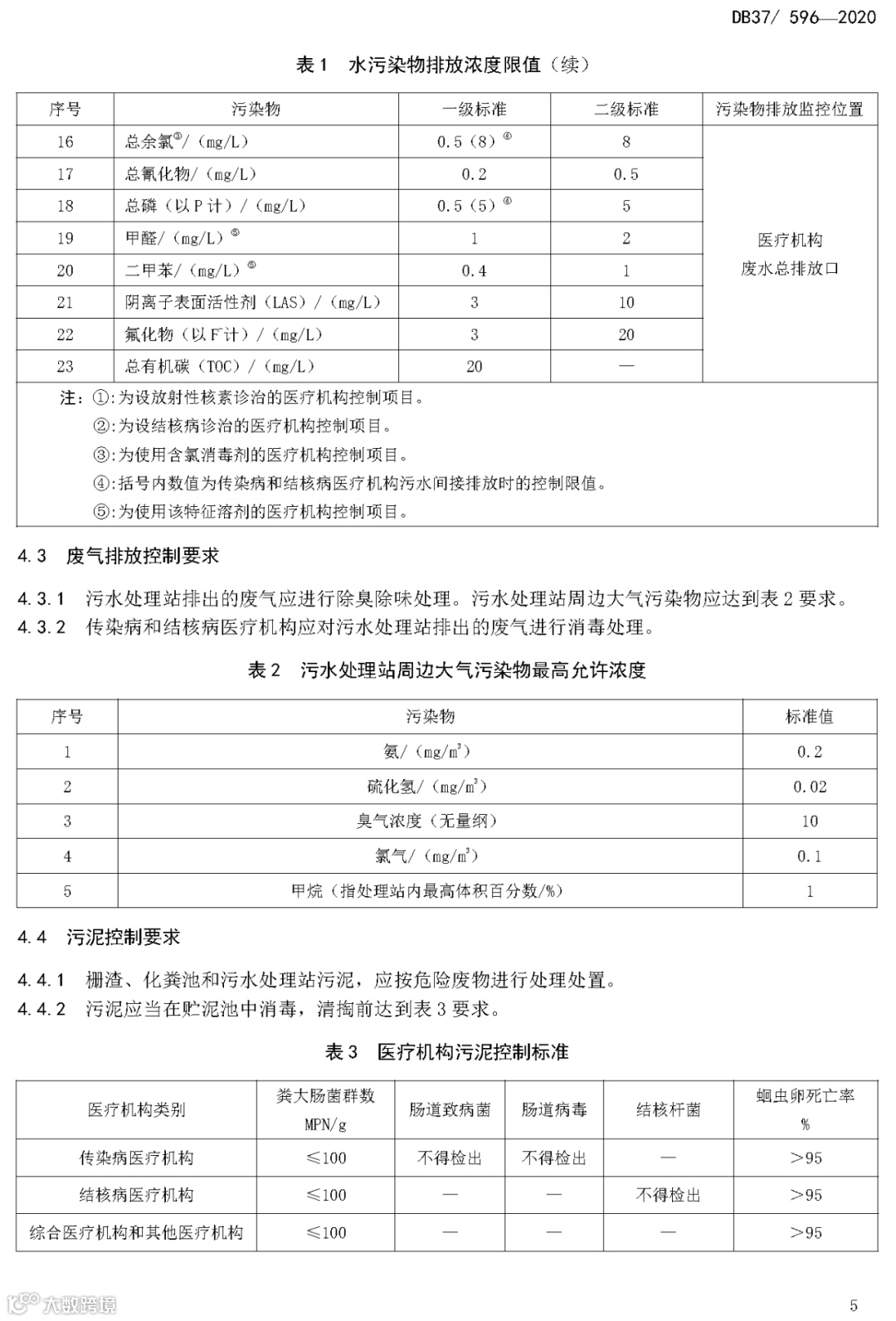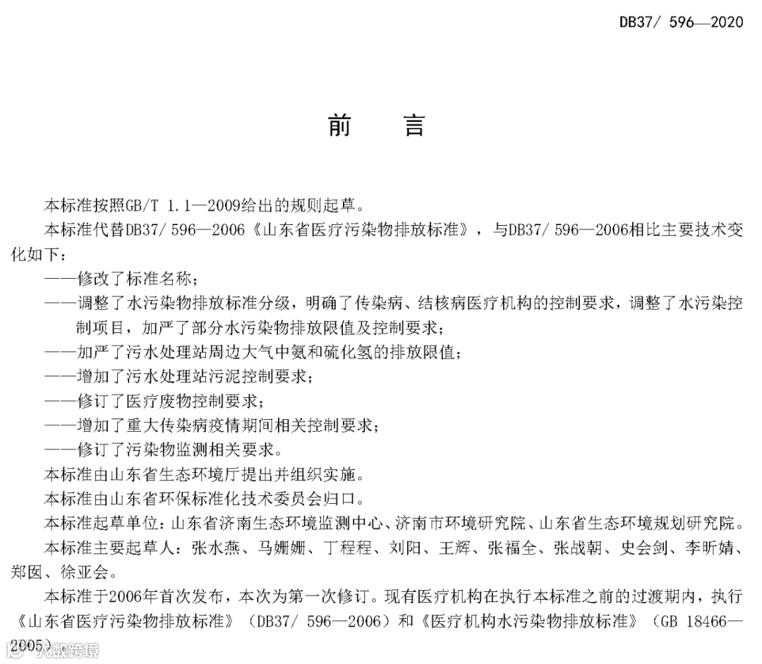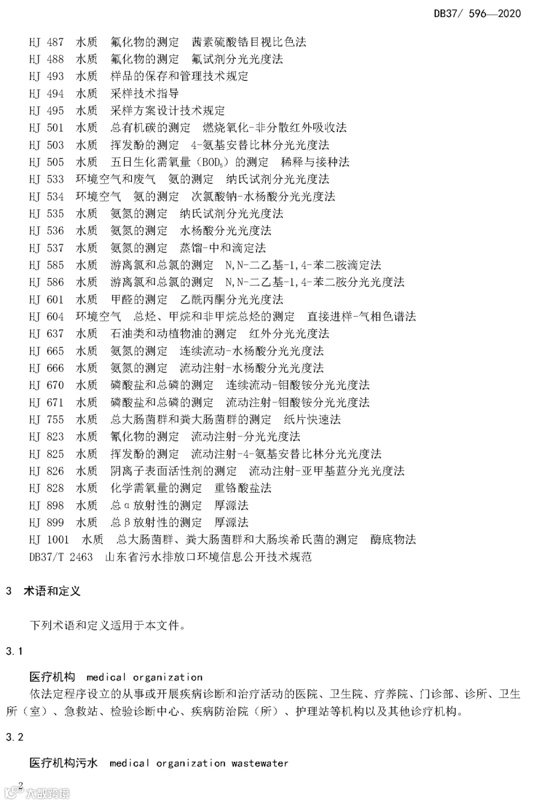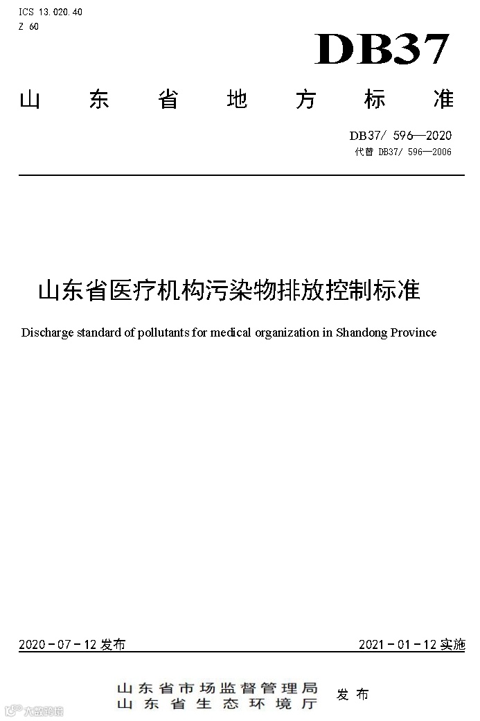 DB37/596-2020《山东省医疗机构污染物排放控制标准》