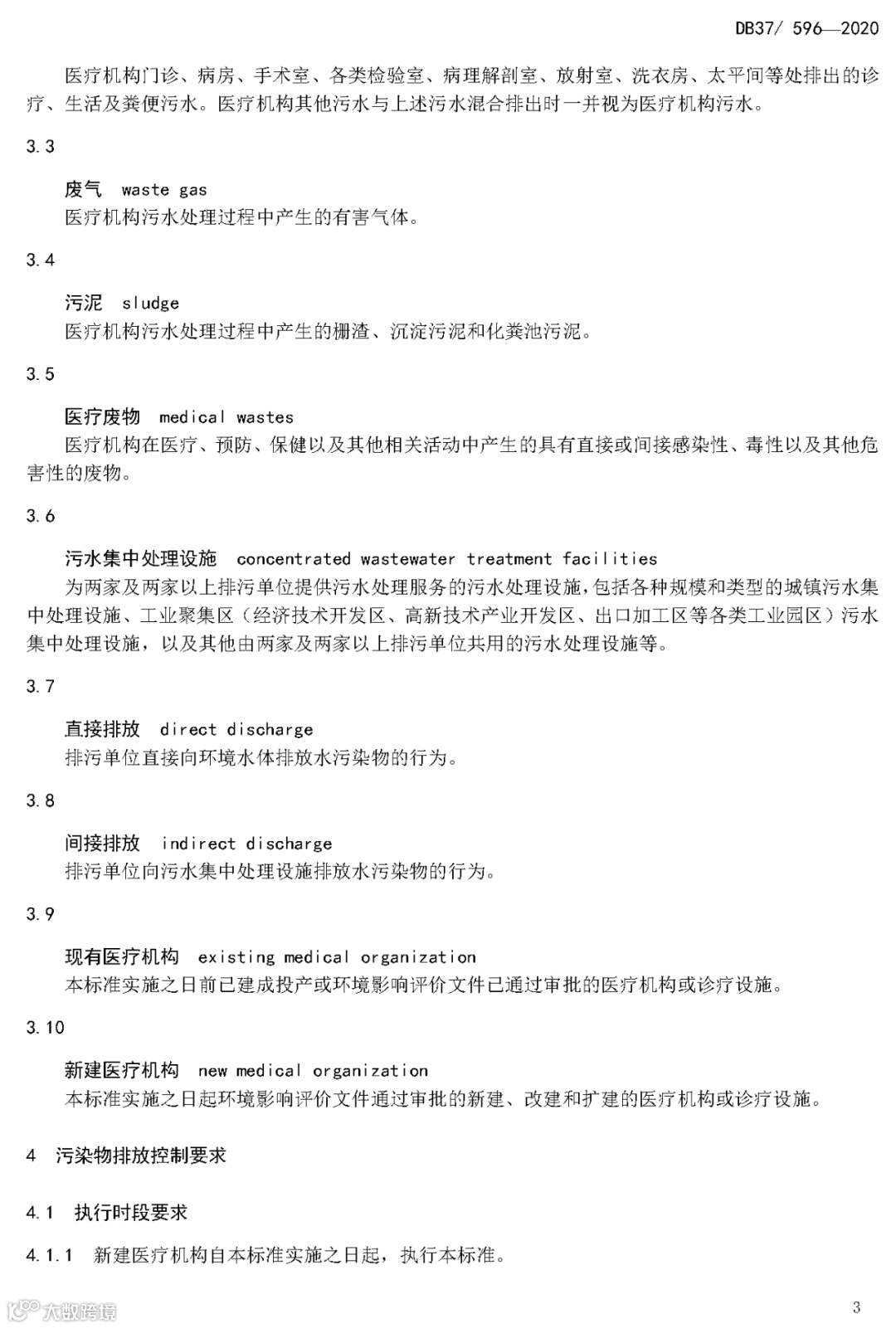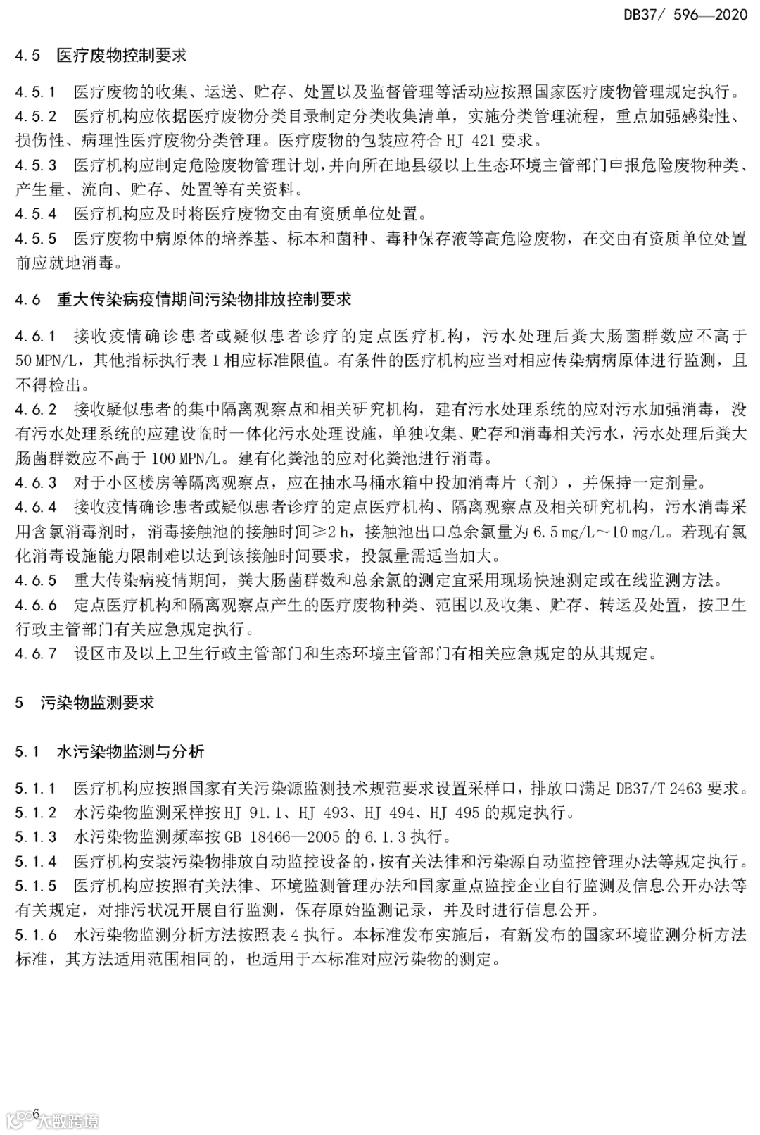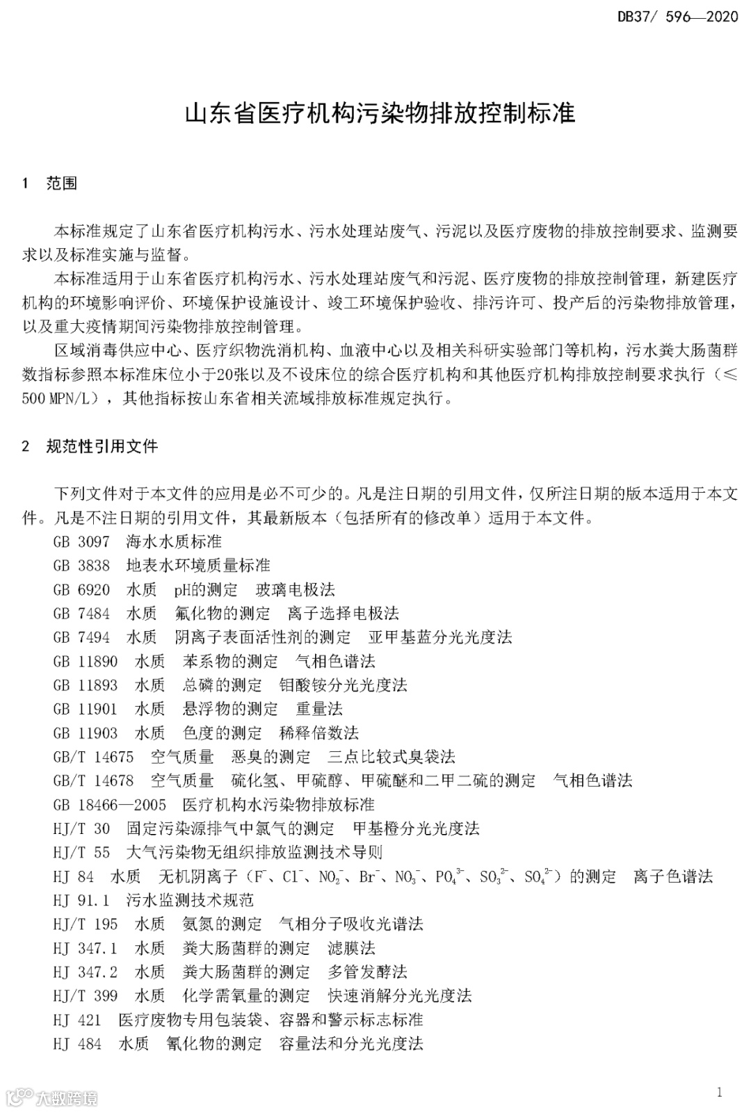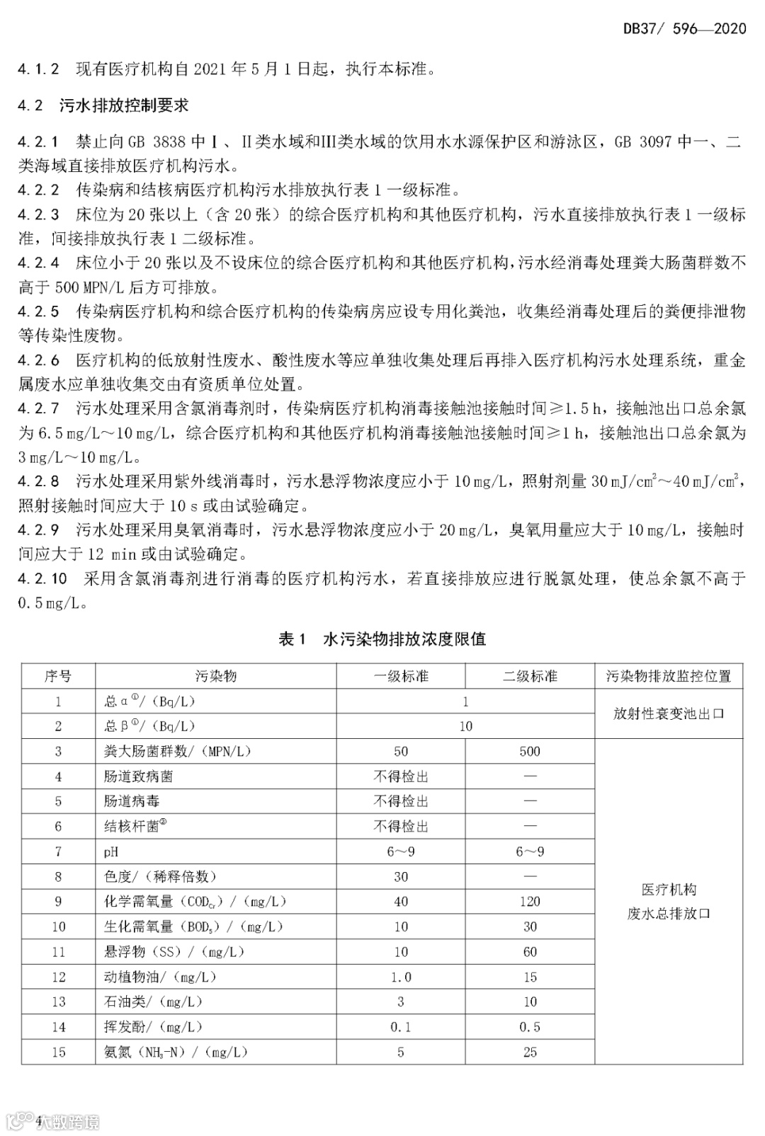 DB37/596-2020《山东省医疗机构污染物排放控制标准》