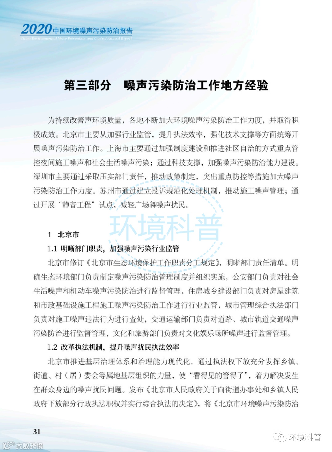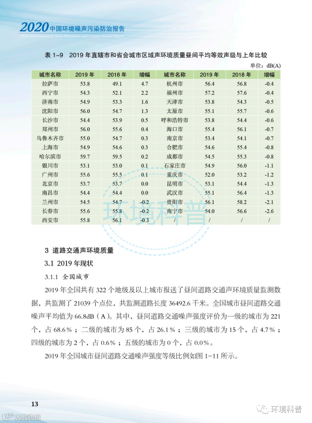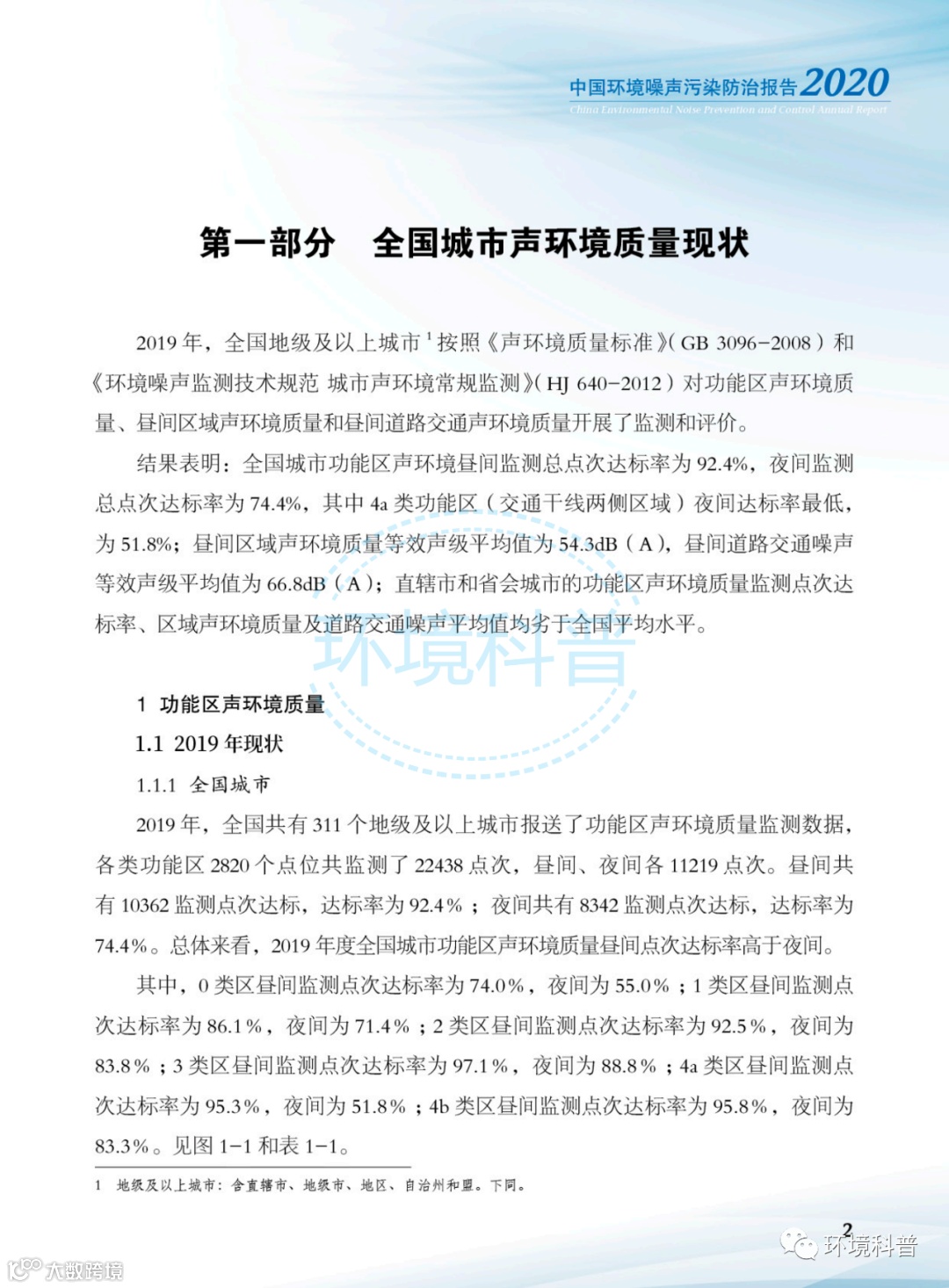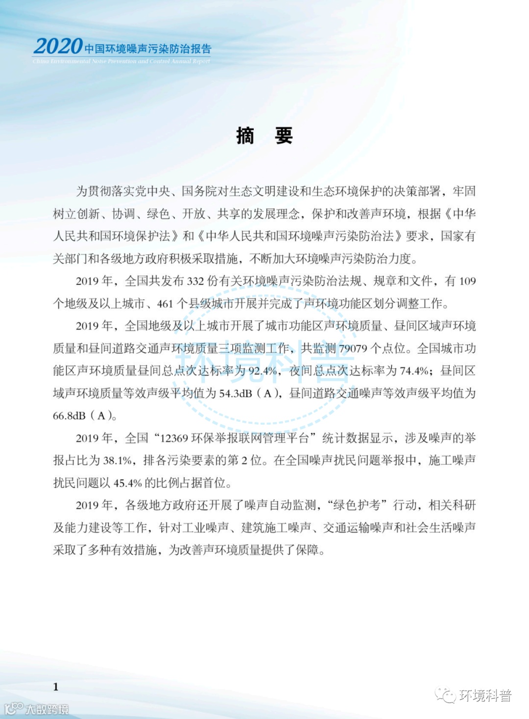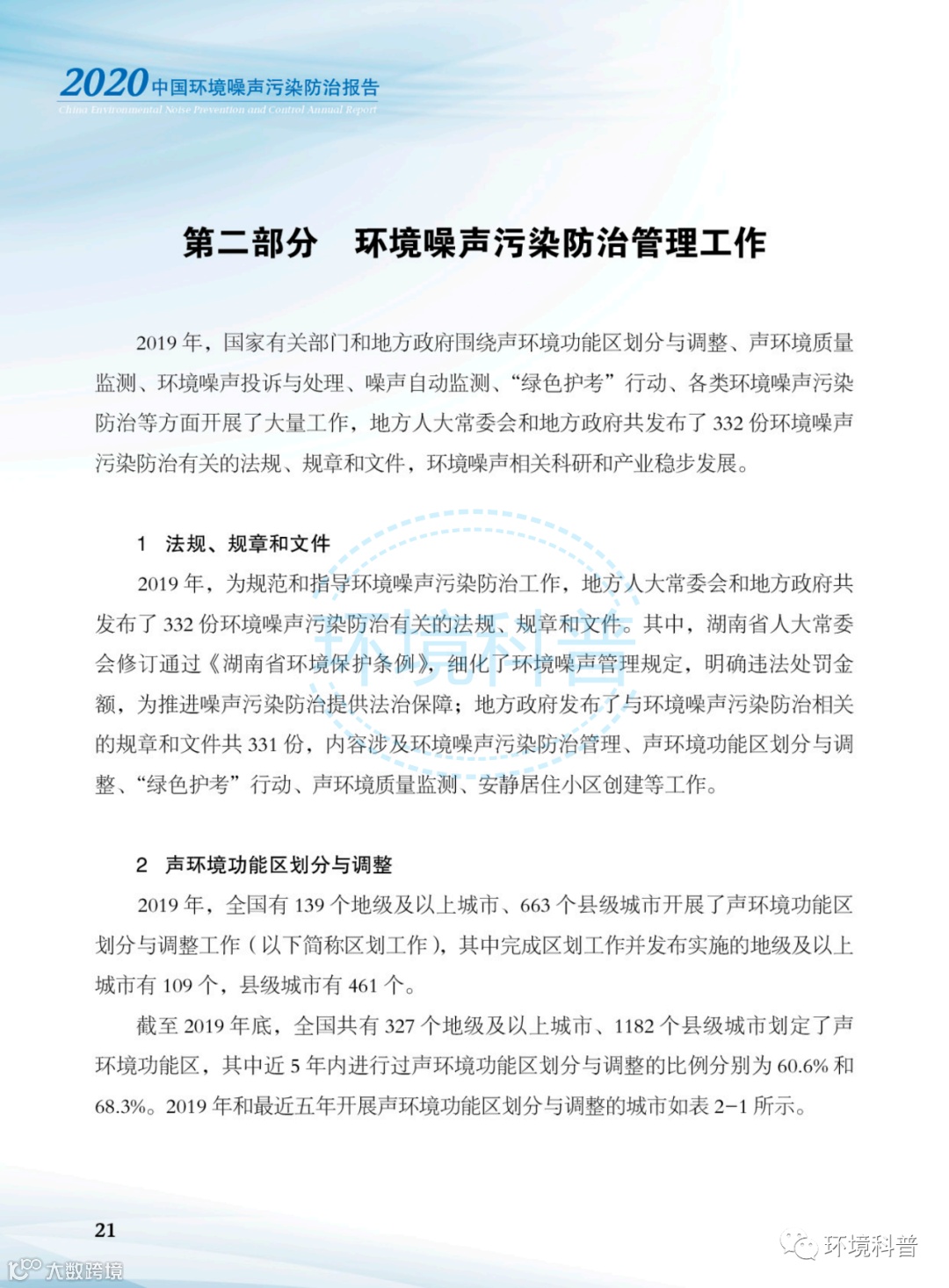 生态环境部发布《2020年中国环境噪声污染防治报告》