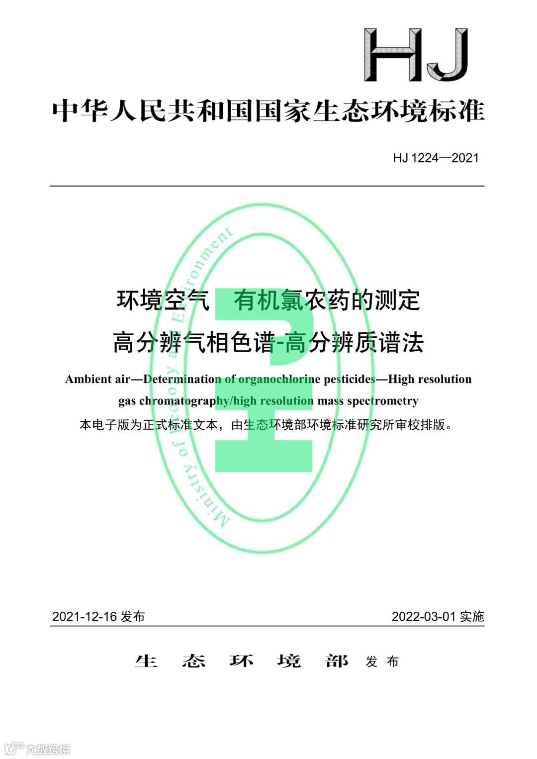 环境空气 有机氯农药的测定 高分辨气相色谱-高分辨质谱法(HJ 1224—2021)