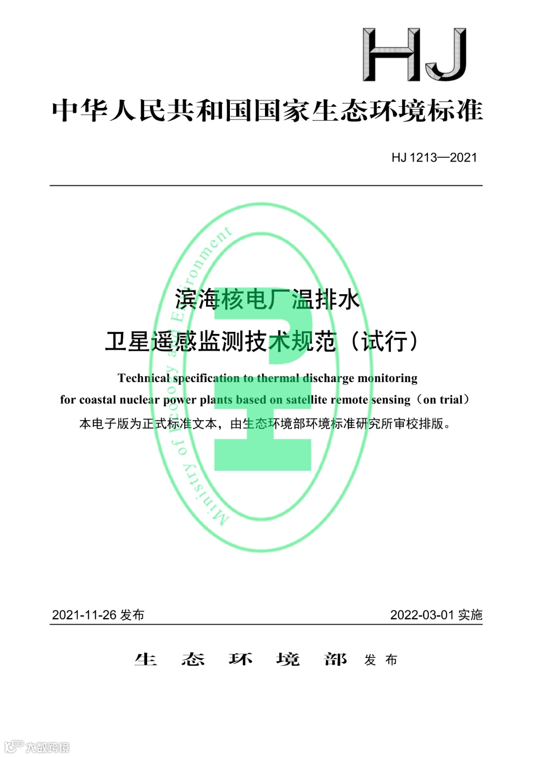 3、滨海核电厂温排水卫星遥感监测技术规范(试行)(HJ 1213—2021)