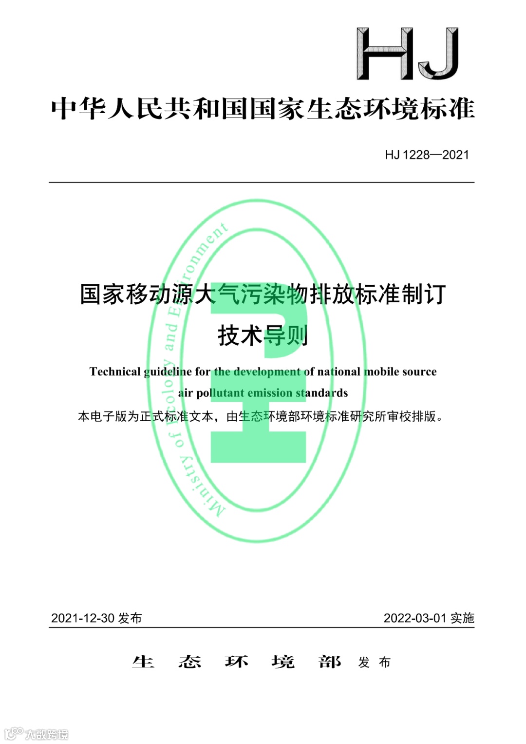 国家移动源大气污染物排放标准制订 技术导则(HJ 1228—2021)