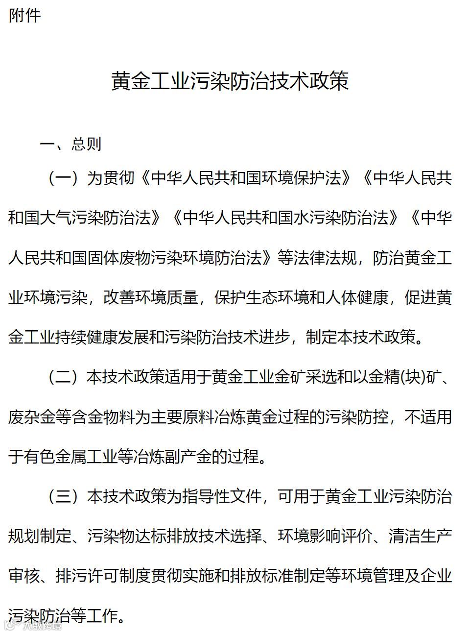 近日,生态环境部发布了《黄金工业污染防治技术政策》,如下:
