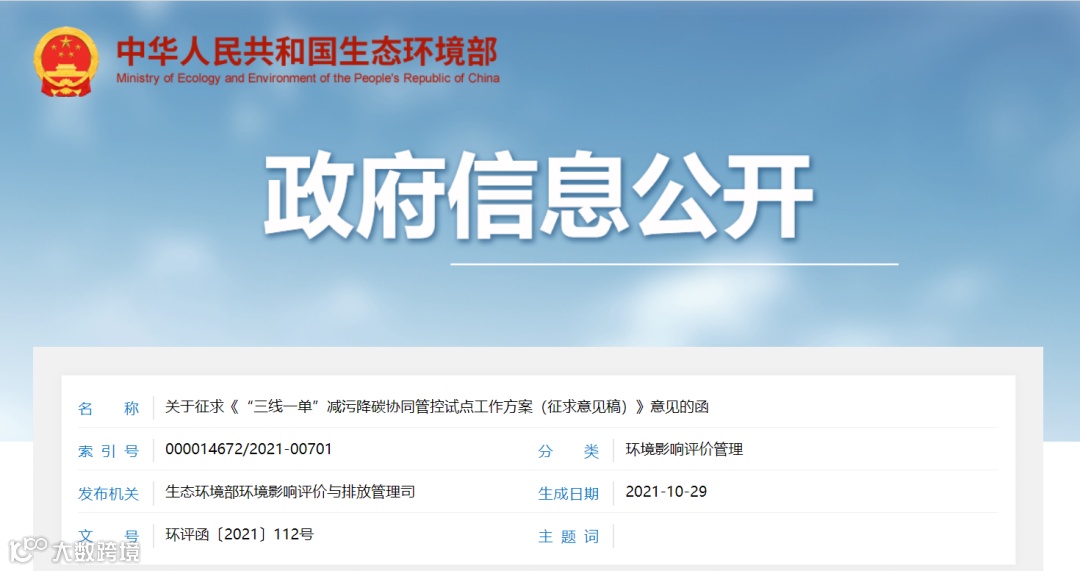 关于征求《“三线一单”减污降碳协同管控试点工作方案(征求意见稿)》意见的函