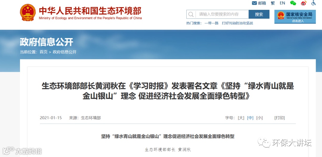 2021年是“十四五”开局之年,是我国现代化建设进程中具有特殊重要性的一年,对生态文明建设实现新进步至关重要。我们要以习近平生态文明思想为指导,立足新发展阶段,贯彻新发展理念,构建新发展格局,切实把“绿水青山就是金山银山”理念落实到具体行动中,以高水平保护倒逼高质量发展。