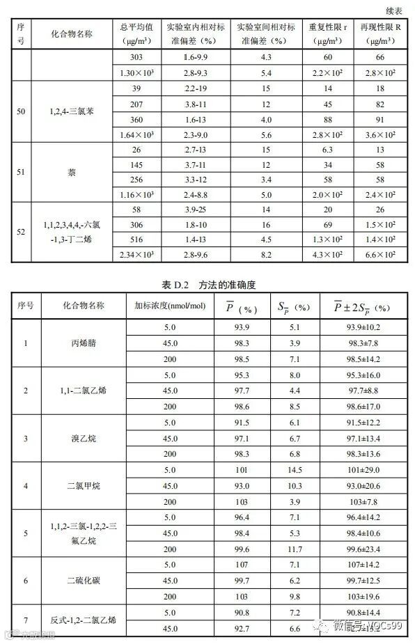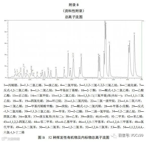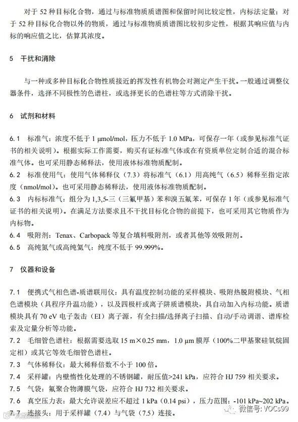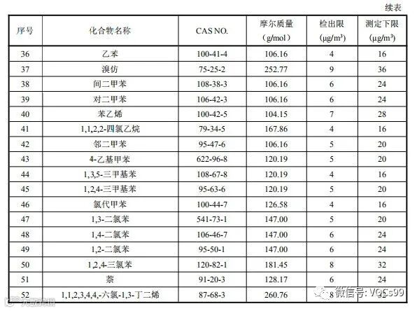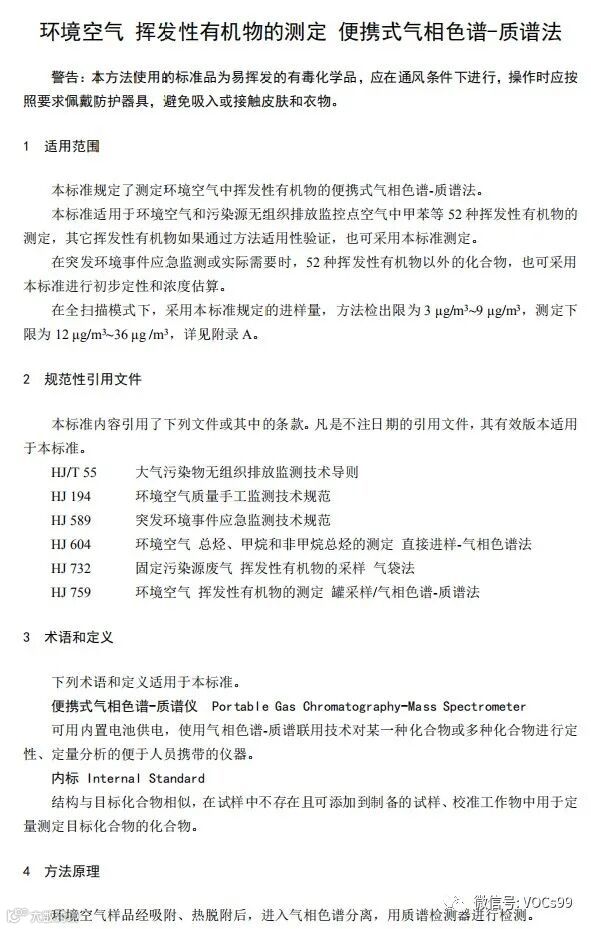 本标准适用于环境空气和污染源无组织排放监控点空气中甲苯等 52 种挥发性有机物的测定,其它挥发性有机物如果通过方法适用性验证,也可采用本标准测定。