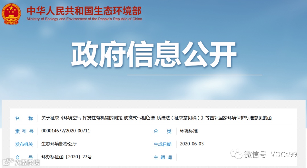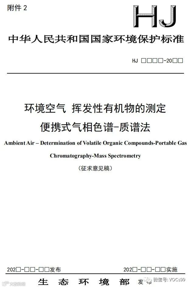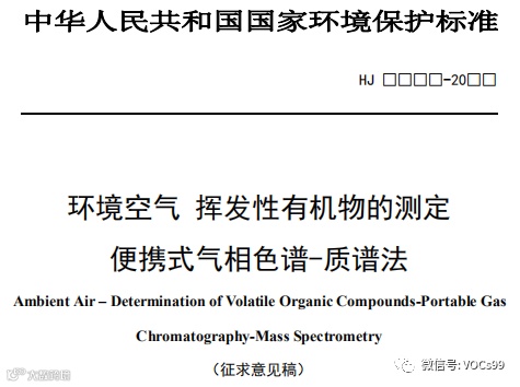导读:今日,生态环境部官网发布《环境空气 挥发性有机物的测定 便携式气相色谱-质谱法》(征求意见稿)。该标准适用于环境空气和污染源无组织排放监控点空气中甲苯等 52 种挥发性有机物的测定。