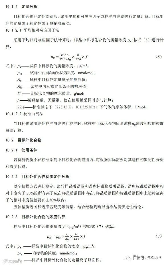 在突发环境事件应急监测或实际需要时,52 种挥发性有机物以外的化合物,也可采用 本标准进行初步定性和浓度估算。