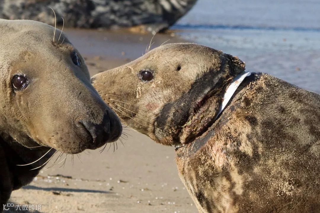 被人造塑料垃圾困住的野生海豹