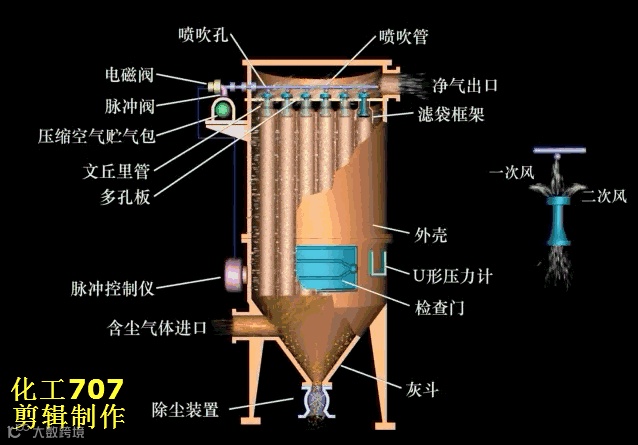 压缩空气经过喷吹口以很高的速度喷出后诱导围绕的空气在极短的时间内喷入滤袋,使滤袋产生快速胀缩。