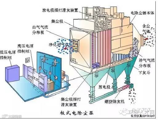 在干燥状态下捕集烟气中的粉尘,沉积在除尘板上的粉尘借助机械振打清灰的除尘器称为干式电除尘器。