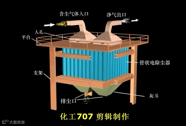 这种电除尘器的除尘极由一根或一组呈圆形、六角形或方形的管子组成,管子直径一般为200—300mm,长度3—5m。截面是圆形或星形的电晕线安装在管子中心,含尘气体自上而下从管内通过。