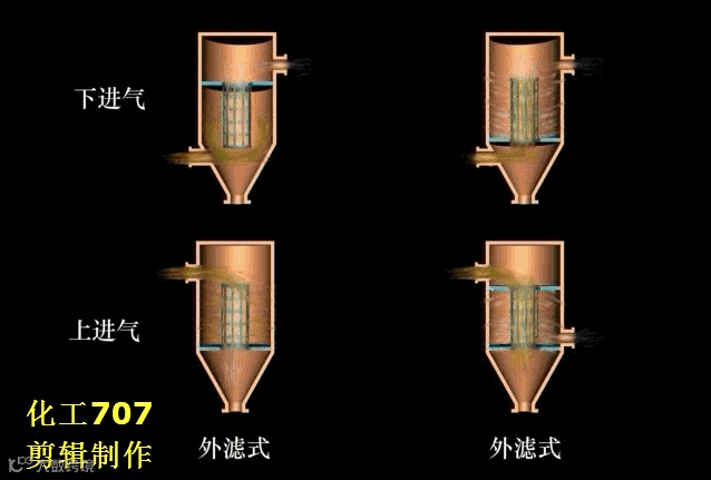 内虑式除尘器的含尘气流首先进入滤袋内部,由内向外过滤,粉尘沉积于滤袋表面。内滤式的滤袋外部为干净气体侧便于检查与换袋。内滤式一般适用于机械清灰和逆气流清灰袋式除尘器。