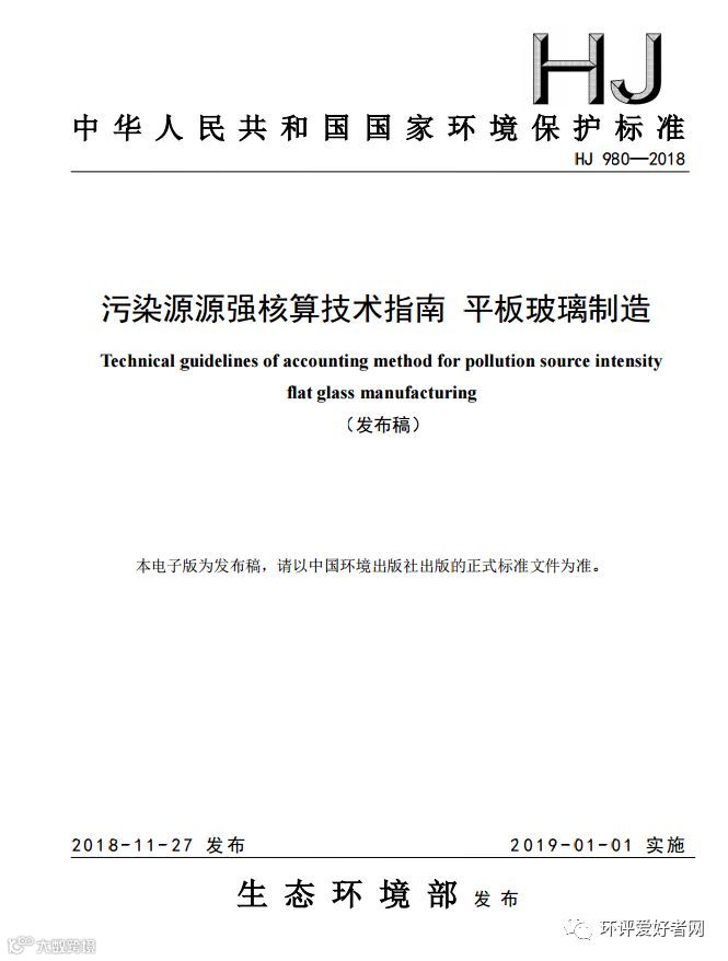 关于发布《污染源源强核算技术指南 平板玻璃制造》等五项国家环境保护标准的公告