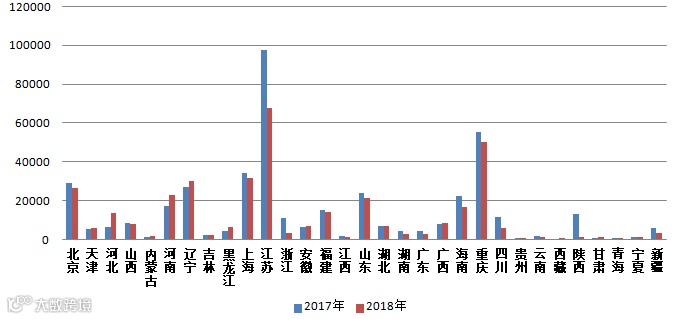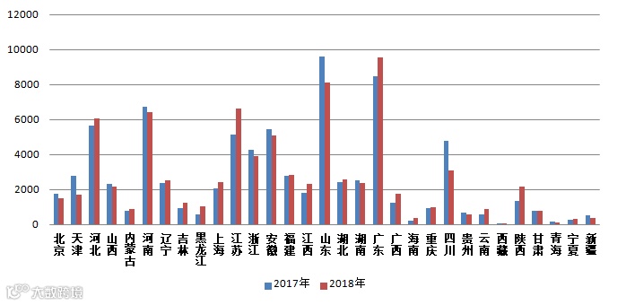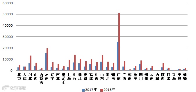 图2 2017-2018年各省(区、市)电话举报量