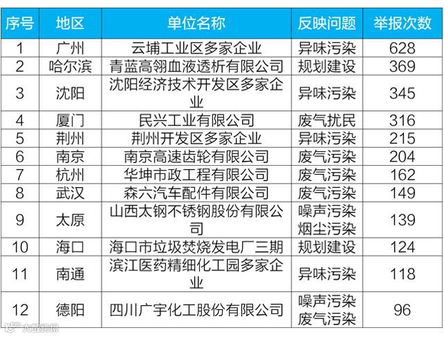 表2 主要举报行业污染问题及突出地区
