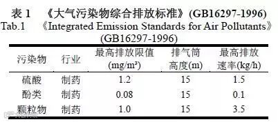 (1)反应釜处理工艺有机废气排放参照《大气污染物综合排放标准》(GB16297-1996),执行表1 中二级执行标准。
