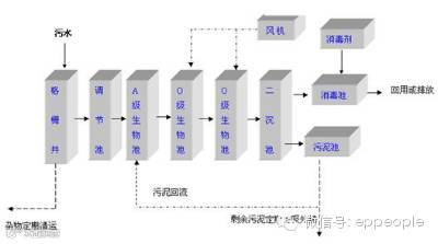 为保护纳污水系,不污染周边环境,促进环境与经济社会持续、稳定、协调发展,针对污水水质的特点,采用常规的生活污水一体化设备工艺流程,主体工艺为“A/O/O生物接触氧化”工艺,该处理工艺较为简单,操作运行方便,日常费用低廉,出水稳定,主要设备为碳钢结构。