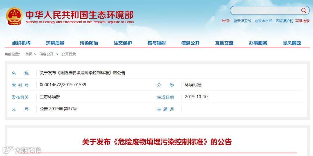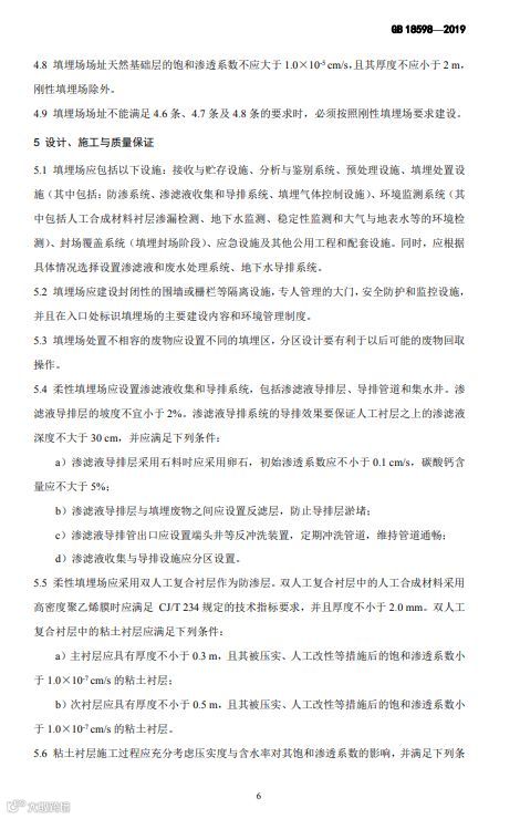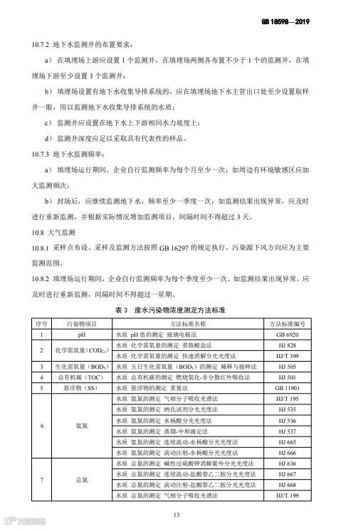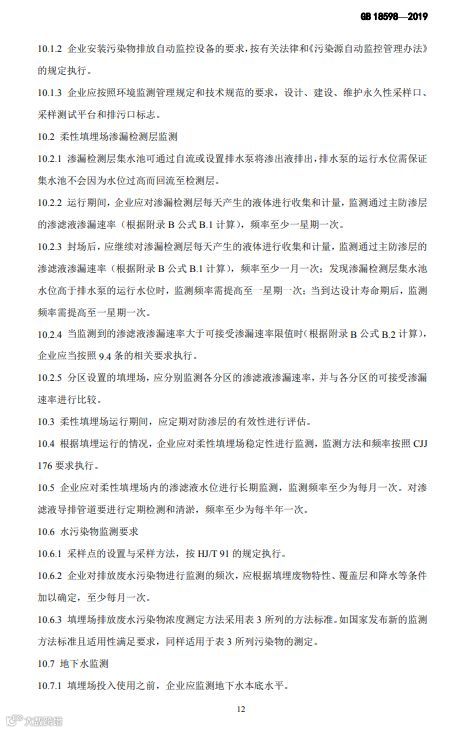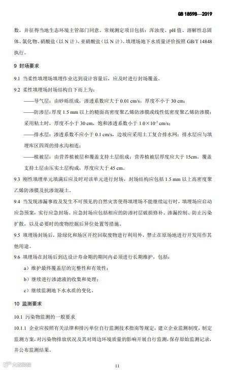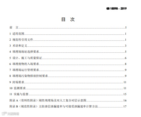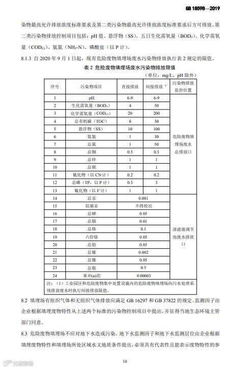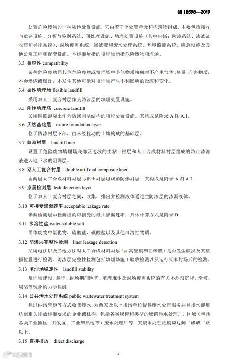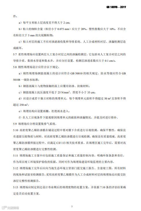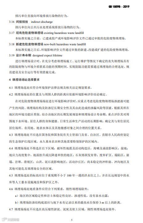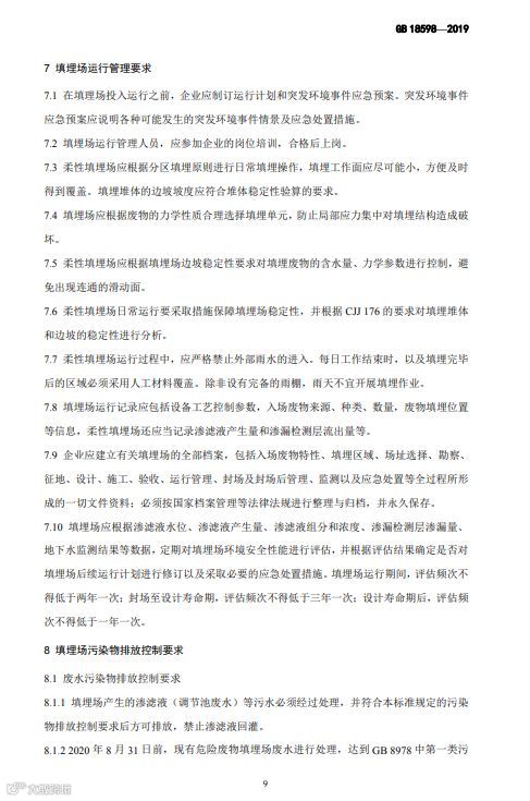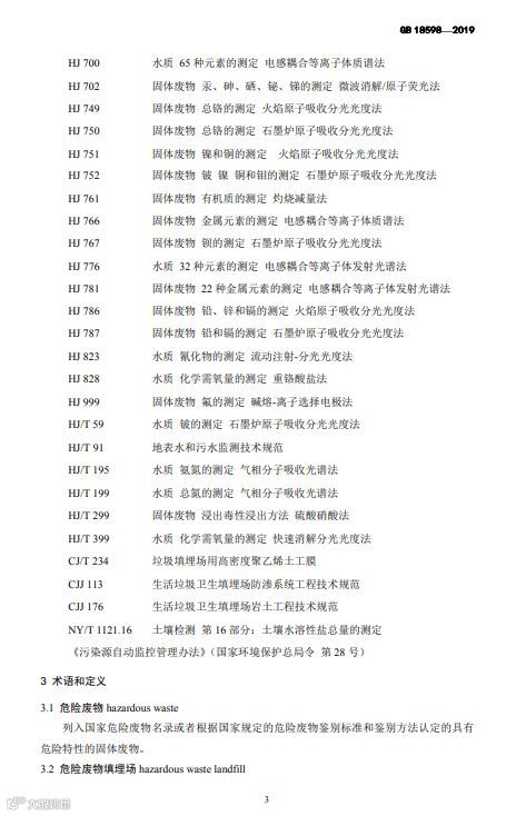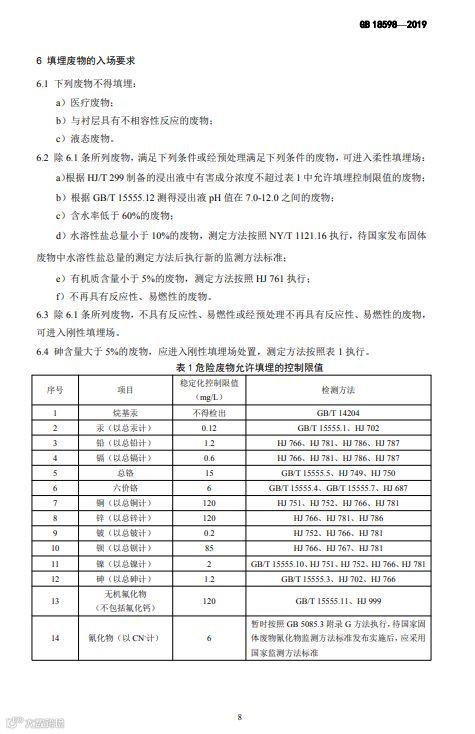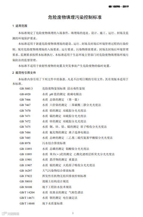 危险废物填埋污染控制标准(GB 18598-2019)。