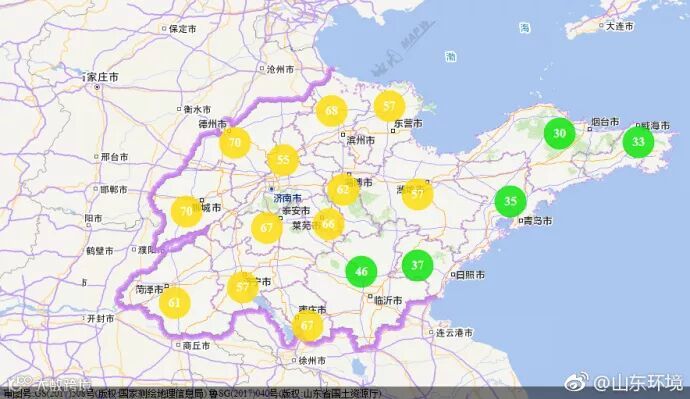 #每日能见度#【山东十七城市能见度排名】 2018年07月20日8时