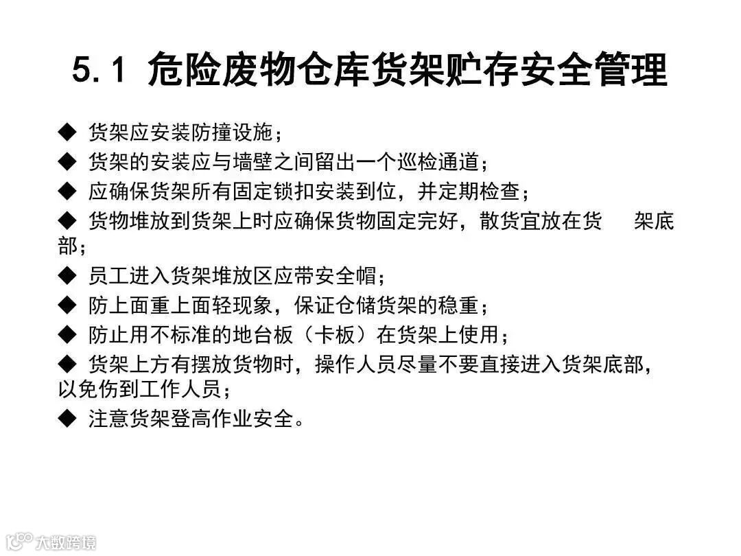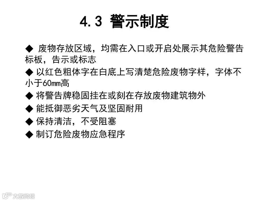 导读:一、危险废物的定义及贮存仓库的特点二、危险废物仓库类别三、危险废物仓库的管理要求四、危险废物分类标识五、危险
