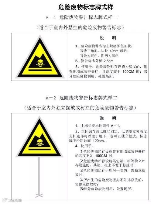 国家公布最新危险废物标志牌式样图,适用于各危废产生单位,工程竣工验收公司,环境监测检测公司,危险废物运输公司,危险废物处置公司。