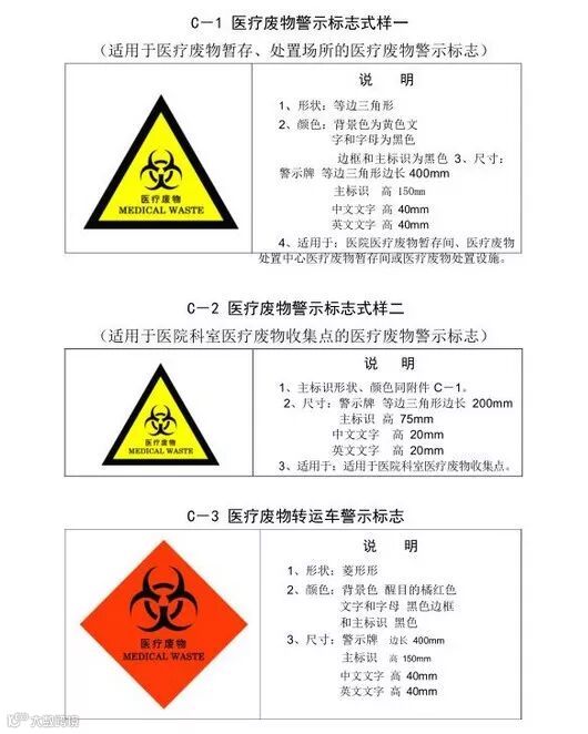 医疗废物标志牌,分为医疗废物暂存、处置场所警示标志,医院科室医疗废物收集点警示标志,医疗废物转运车警示标志,请区别。