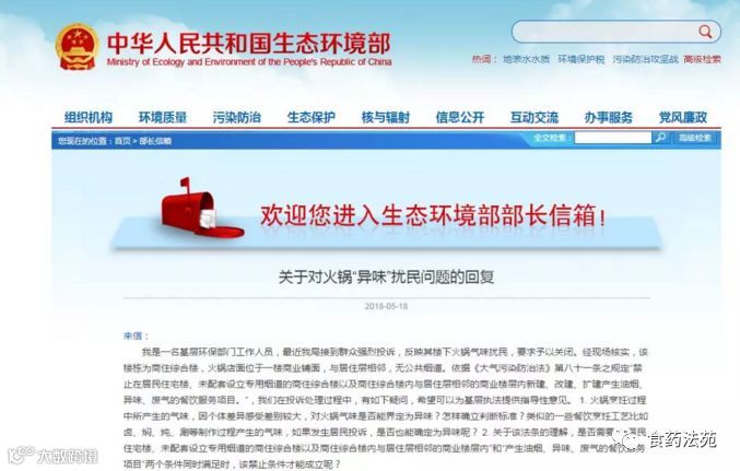 关于《大气污染防治法》第一百一十八条在餐饮监管中适用的回复