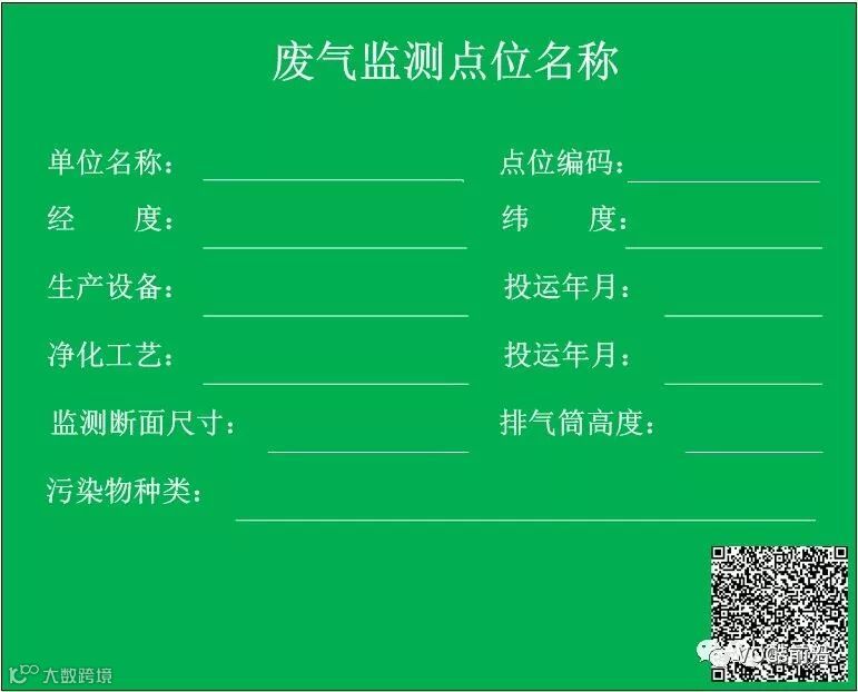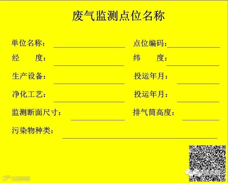 3.7 监测点位二维码信息应包括排污单位名称、地址、企业法人、联系电话、监测排口性质和数量、点位编码、监测点位的地理定位信息、排放的主要污染物种类、设施投运时间等有关资料。
