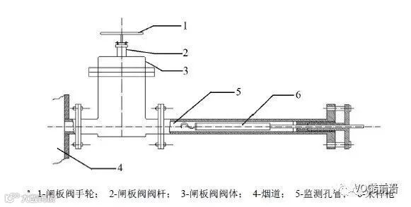 2.1.2 对于输送高温或有毒有害气体的烟道,监测断面应设置在烟道的负压段;若负压段不满足设置要求,应在正压段设置带有闸板阀的密封监测孔(见图1)。