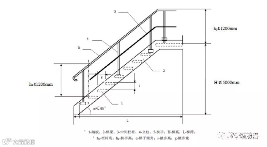 2.3.2 监测平台与坠落高度基准面之间距离超过2 m时,不应使用直梯通往监测平台,应安装固定式钢斜梯、转梯或升降梯到达监测平台。梯子无障碍宽度≥0.9 m,梯子倾角不超过45度。每段斜梯或转梯的最大垂直高度不超过5 m,否则应设置缓冲平台,缓冲平台的技术要求同监测平台(见图5)。