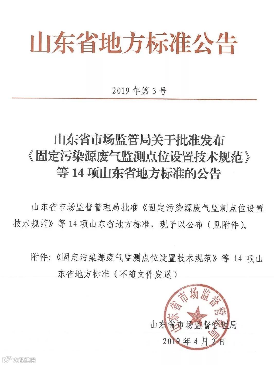 山东省市场监管局关于批准发布《固定污染源废气监测点位置技术规范》等14项山东省地方标准的公告
