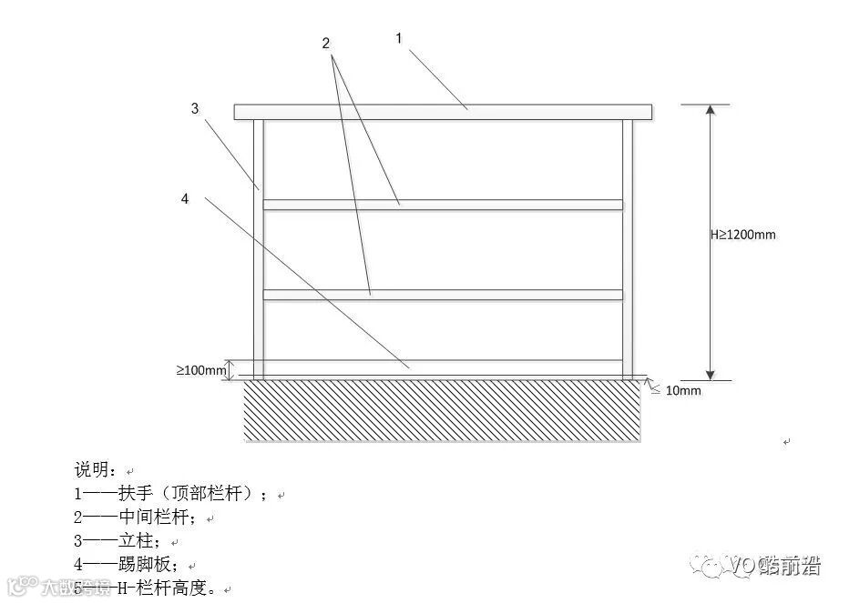2.1.1.2 监测平台的防护栏杆应设置踢脚板,踢脚板应采用不小于100 mm×2 mm的钢板制造,其顶部在平台面之上高度应≥100 mm,底部距平台面应≤10 mm。