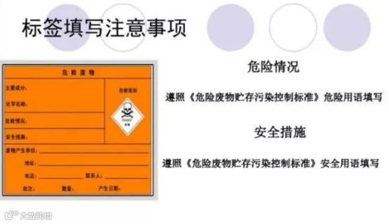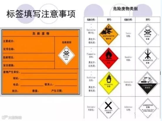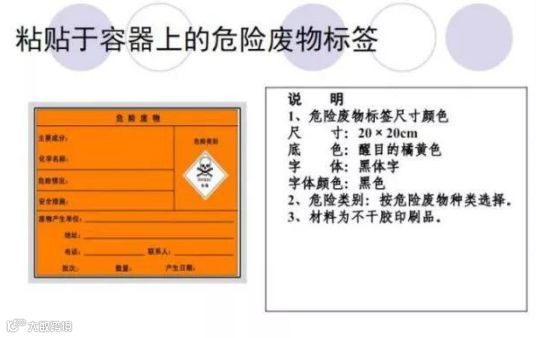 4.不同种类危险废物应有明显的过道划分,墙上张贴危废名称,液态危废需将成装容器放至防泄漏托盘内并在容器粘贴危险废物标签,固态危废包装需完好无破损并系挂危险废物标签,并安要求填写。