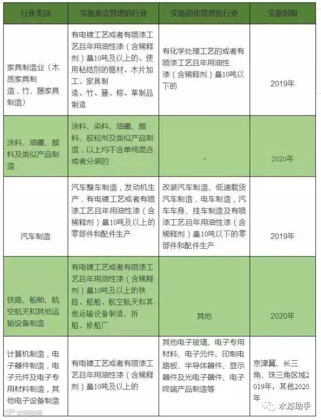 来重为落实《国务院办公厅关于印发控制污染物排放许可制实施方案的通知》(国办发﹝2016﹞81号)按行业分步实现对固定污染源全覆盖的要求,根据“水十条”、“大气十条”的工作任务,明确规定,2017年率先对火电、钢铁、有色金属冶炼、焦化、石油炼制、化工、原料药、农药、氮肥、造纸、纺织印染、制革、电镀、平板玻璃、农副食品加工等15个行业核发排污许可证,其中造纸和火电两个行业的企业要求在2017年6月底前取到排污许可证,其他13个行业在2017年下半年全面开展。到2020年,《排污许可名录》中规定的应当取得排污许可证的排污单位必须持证排污。