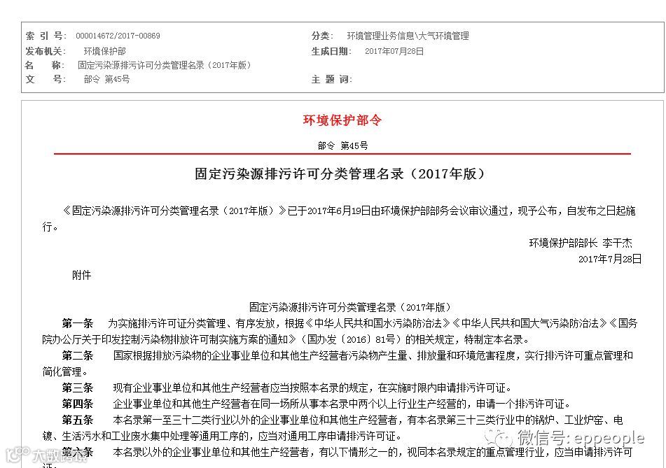 7月28日,环境保护部印发《固定污染源排污许可分类管理名录(2017年版)》(以下简称《排污许可名录》)。这是贯彻落实党中央、国务院决策部署,推动实施排污许可制度实施的重要基础性文件,对进一步完善排污许可制度改革具有重要意义。
