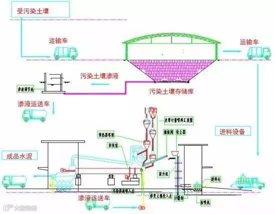 原理:利用水泥回转窑内的高温、气体长时间停留、热容量大、热稳定性好、碱性环境、无废渣排放等特点,在生产水泥熟料的同时,焚烧固化处理污染土壤。