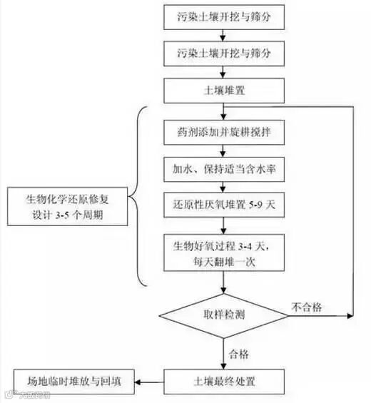 原理:对污染土壤堆体采取人工强化措施,促进土壤中具备降解特定污染物能力的土著微生物或外源微生物的生长,降解土壤中的污染物。