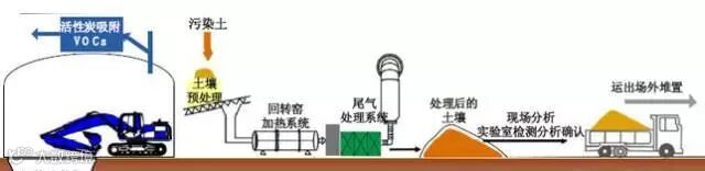原理:通过直接或间接加热,将污染土壤加热至目标污染物的沸点以上,通过控制系统温度和物料停留时间有选择地促使污染物气化挥发,使目标污染物与土壤颗粒分离、去除。