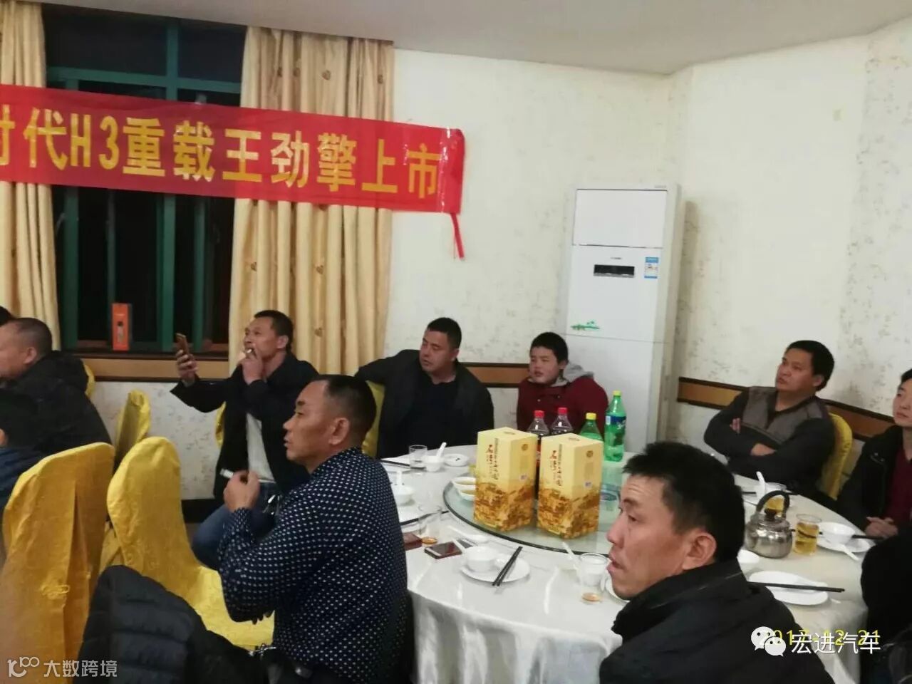 6.客户认真聆听,看得出,重载王的帅气外观、优越性能、实用的容积、便宜的价格加上促销巨惠的购车支持,对于这群拉瓷片、家装材料和粮油运输的重载需求用户是绝对有吸引力的,比起即将上桌的可口饭菜香醇美酒,H3重载王更让他们“垂涎三尺”~!