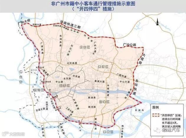 这一管理措施简称“开四停四”。广州交警部门已在其微信公号“广州交警”上发布了实施“开四停四”的具体管控区域。全体公民放假的节日,召开中国共产党广东省代表大会、中国共产党广东省委员会全体会议、广东省人民代表大会和广东省政治协商会议,举办中国进出口商品交易会等期间不实施“开四停四”管理措施。