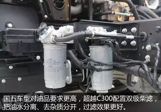 随着国五车型的排放升级,自然对油品要求也是更高的。超越C300配置双级柴滤,把油水分离、去杂质分开,过滤效果更好。