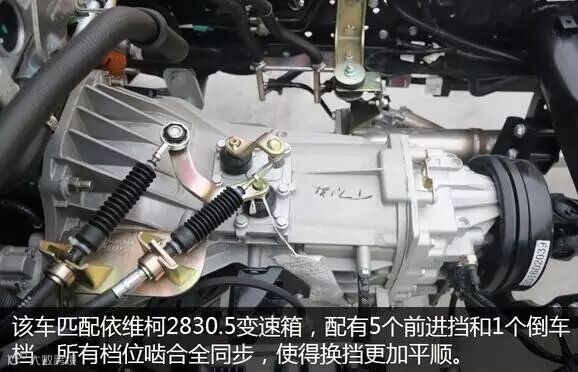 传动系统方面,匹配上柴发动机的是依维柯2830.5变速箱,配有5个前进挡和1个倒车档,第5档为超速档,速比为0.777,以上所有档位都有同步器。其中,1、2档为双锥面同步器,这也使得这款车换挡更加平顺。依维柯2830.5变速箱采用铝合金压铸壳体,结构紧凑,总成重量更轻,且齿轮精度较高,具有传动平稳、噪声低的特点。