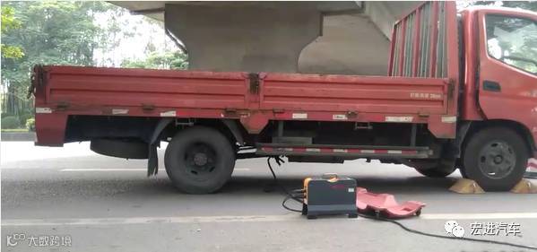 之前两辆没有合格的轻卡之一,边上就是尾气检测设备