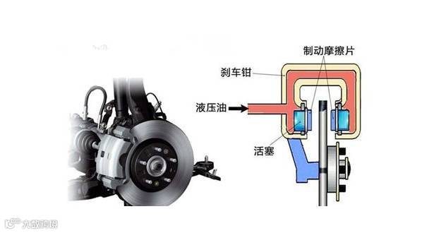 刹车盘随车轮转动,在刹车时,通过液压控制,刹车卡钳活塞会推动刹车片夹住刹车盘产生摩擦力,来达到制动效果。现如今盘式刹车演变出多种不同的类型来提高散热、刹车力,比如说通风盘式、盘鼓结合式、陶瓷刹车片等。