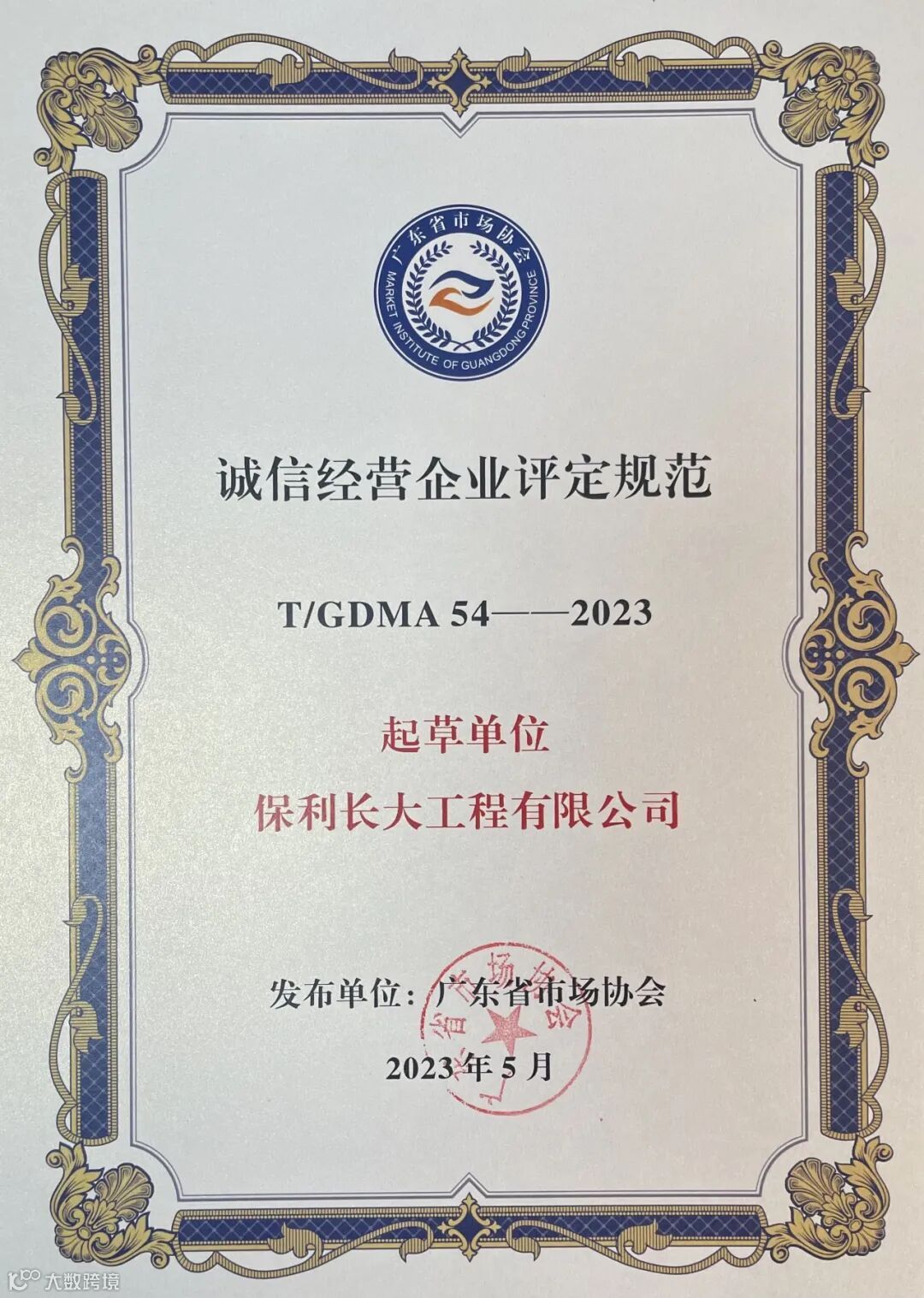 公司还积极参与广东省市场协会组织的“守合同重信用企业公示活动”评定活动和《诚信经营企业评定规范》团体标准起草工作,获公示为“连续十九年(2002-2020)广东省守合同重信用企业”,在市场上不断树立良好的品牌形象。
